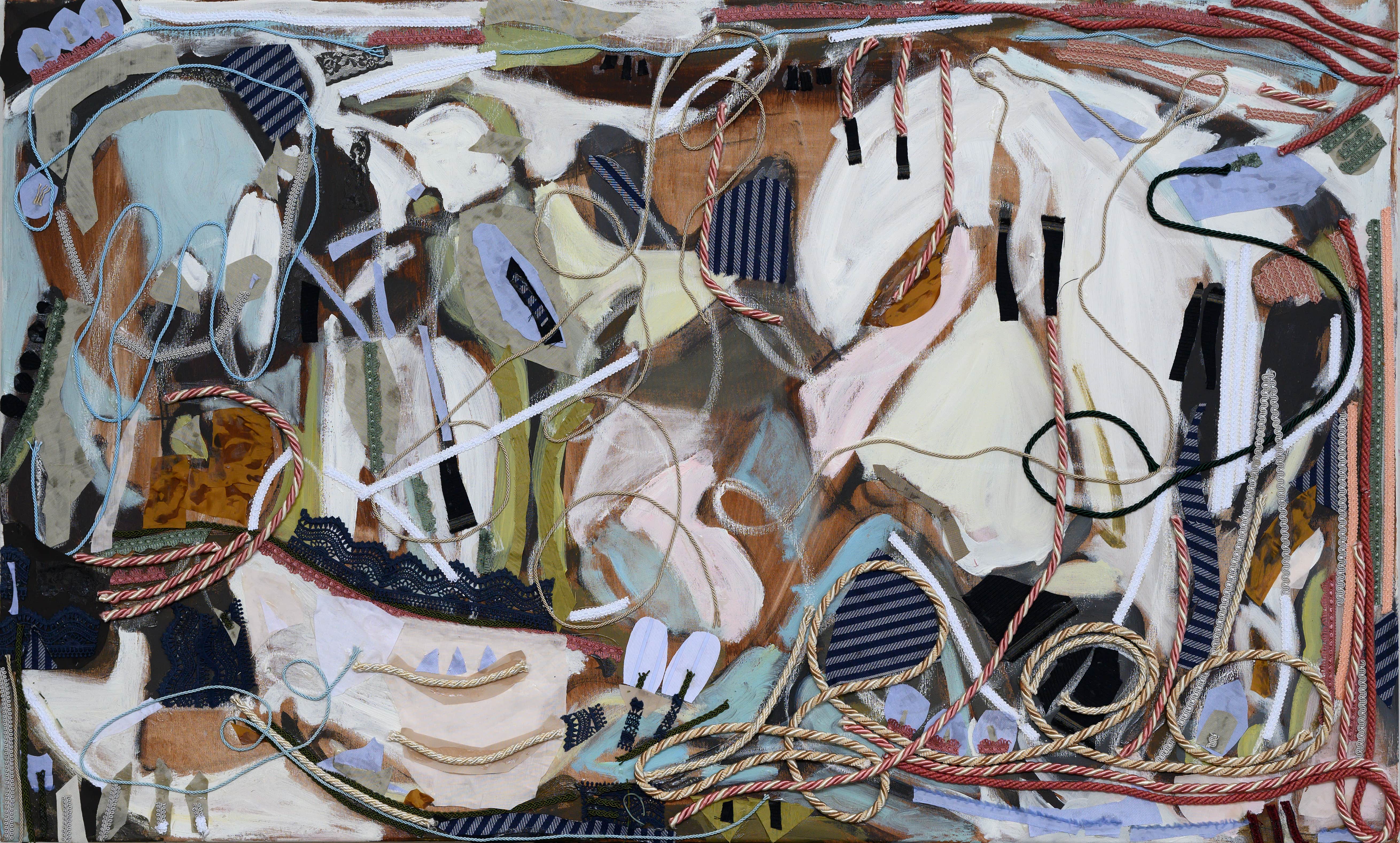 Crosstown Traffic, oil and fabric on canvas, 93 x 129 inches, 2024 Crosstown Traffic, oil and fabric on canvas, 93 x 129 inches, 2024